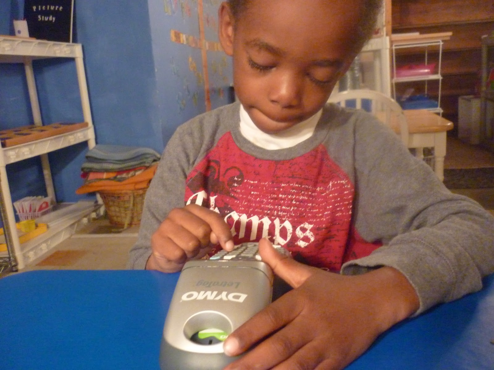 Working with moveable alphabet. Jamesha found the letter "e" and was happily sharing the news.